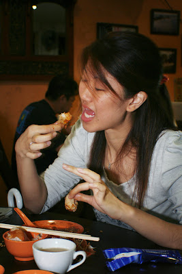 Food there wasn't really fantastic, but we spent quite some time eating because of the crabs.. the crabs were not bad though.. we ordered chilli crabs and garlic pepper crabs, caught a shot of jiemin and dun you think this photo makes you really feel that the crabs are really good? she can't wait to put the next piece of freshly deshelled crab meat into her mouth.